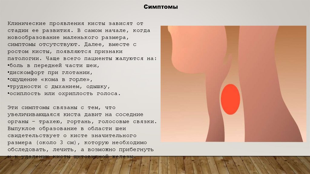 ростом кисты, появляются признаки
