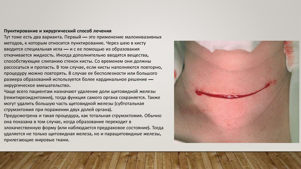 и к удалению кисты щитовидной железы.