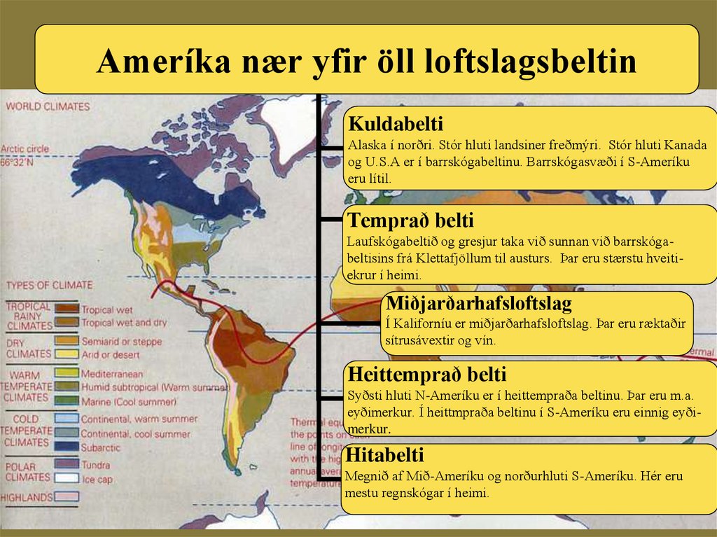 Ameríka nær yfir öll loftslagsbeltinKuldabelti