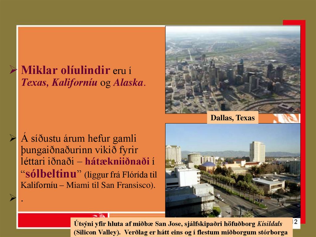 Miklar olíulindir eru íTexas, Kaliforníu og Alaska.