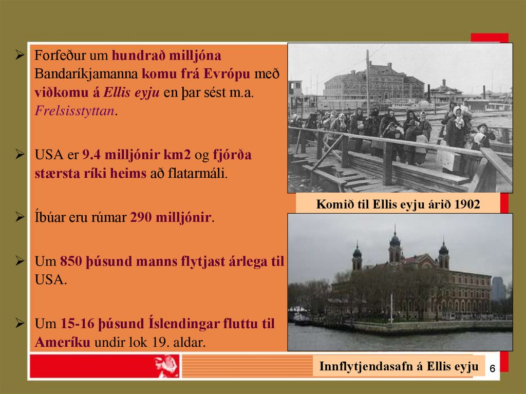 viðkomu á Ellis eyju en þar sést m.a.