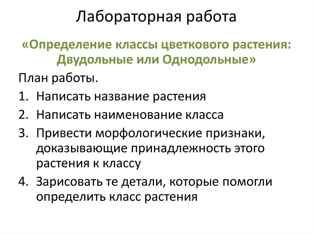 Лабораторная работа«Определение классы цветкового растения:
