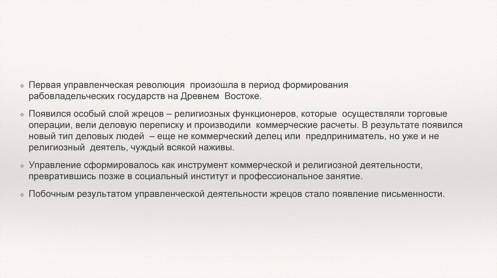 Управление сформировалось как инструмент коммерческой и религиозной деятельности,
