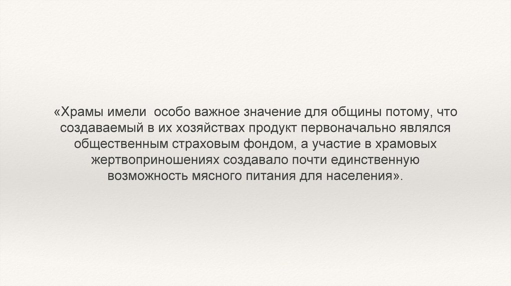 «Храмы имели особо важное значение для общины потому, чтосоздаваемый в их хозяйствах продукт первоначально являлся