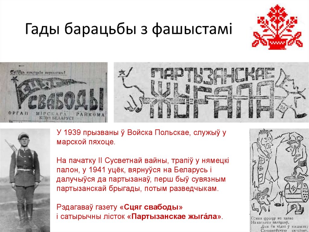 Гады барацьбы з фашыстаміУ 1939 прызваны ў Войска Польскае, служыў у