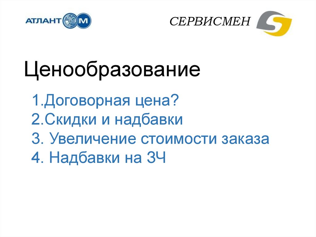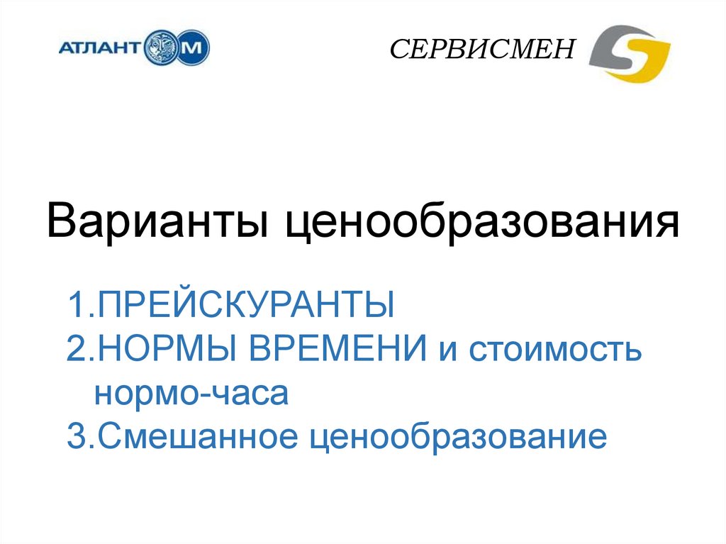 СЕРВИСМЕНВарианты ценообразования