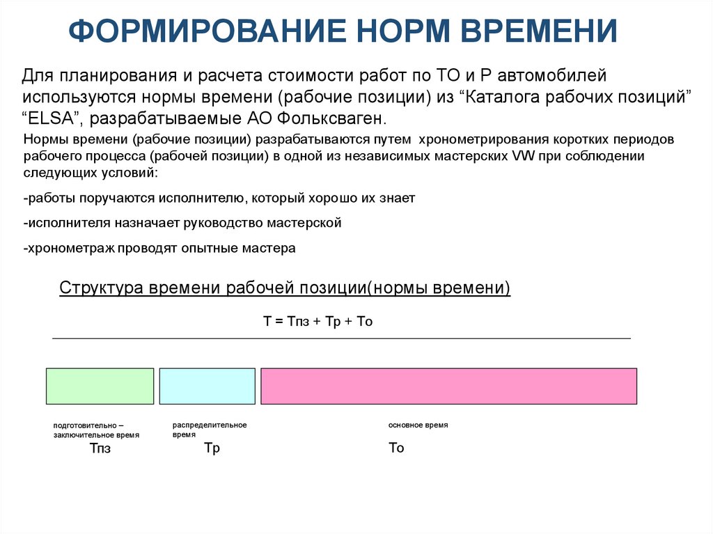 ФОРМИРОВАНИЕ НОРМ ВРЕМЕНИДля планирования и расчета стоимости работ по ТО и Р автомобилей
