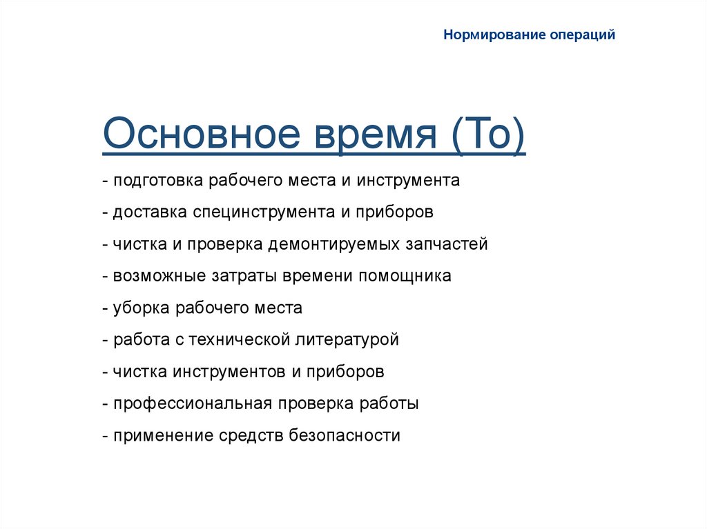 Нормирование операцийОсновное время (То)