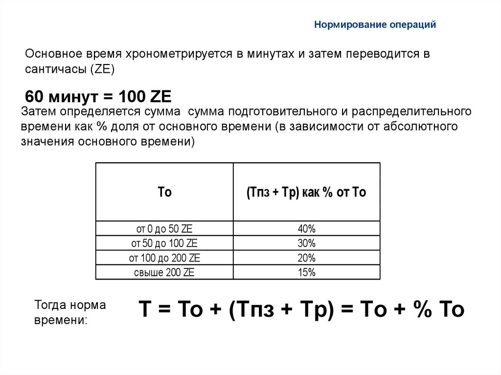 Нормирование операцийОсновное время хронометрируется в минутах и затем переводится в