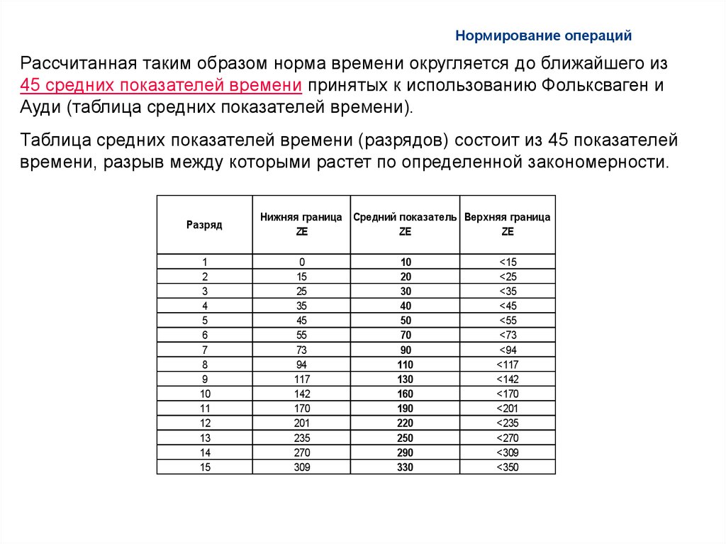 Нормирование операцийРассчитанная таким образом норма времени округляется до ближайшего из