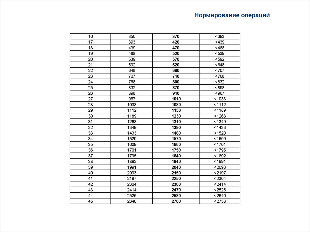 Нормирование операцийПоготовительно – заключительное