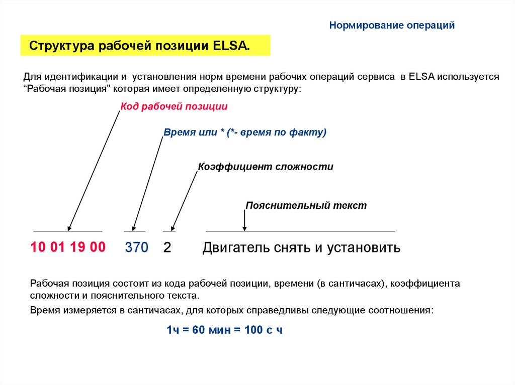 Нормирование операцийСтруктура рабочей позиции ELSA.