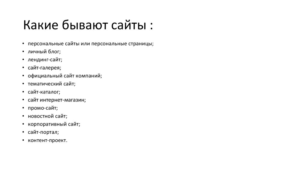 Какие бывают сайты :персональные сайты или персональные страницы;