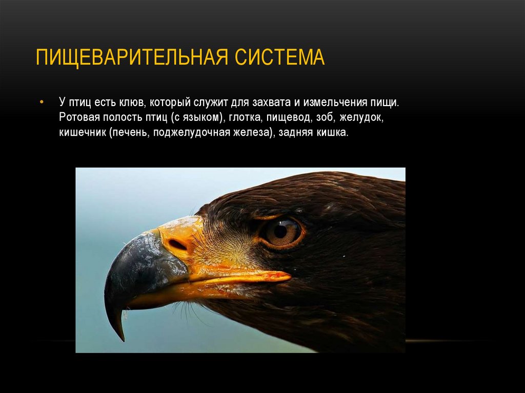 ПИЩЕВАРИТЕЛЬНАЯ СИСТЕМАУ птиц есть клюв, который служит для захвата и измельчения пищи.
