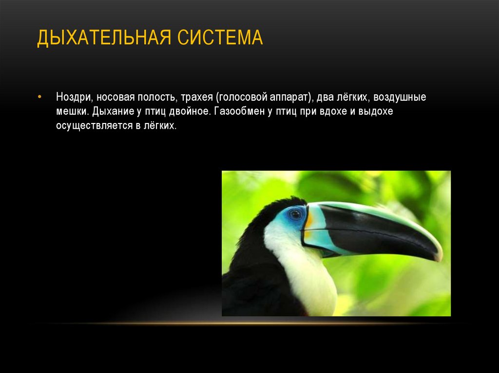ДЫХАТЕЛЬНАЯ СИСТЕМАНоздри, носовая полость, трахея (голосовой аппарат), два лёгких, воздушные