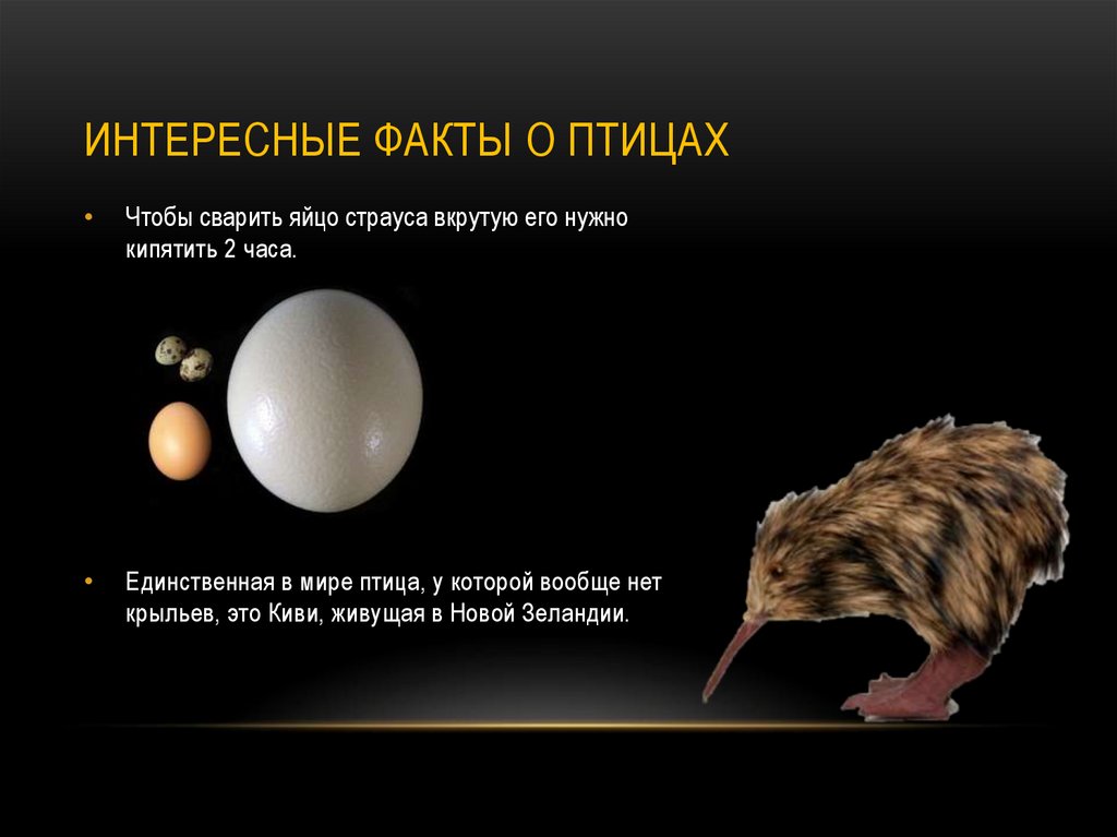 ИНТЕРЕСНЫЕ ФАКТЫ О ПТИЦАХЧтобы сварить яйцо страуса вкрутую его нужно