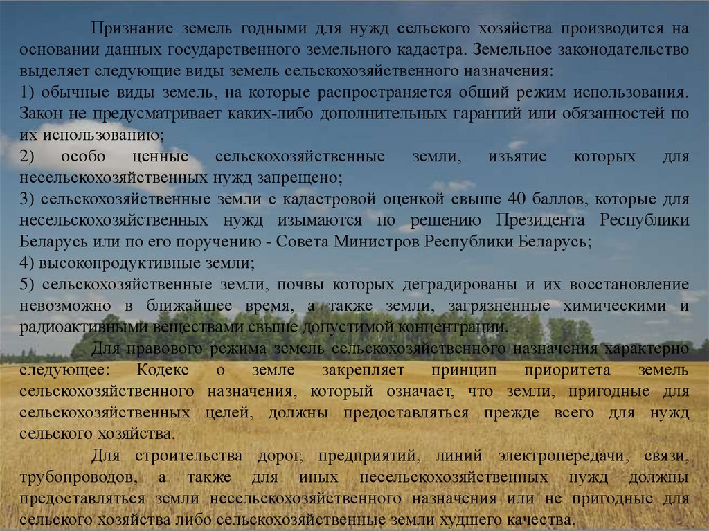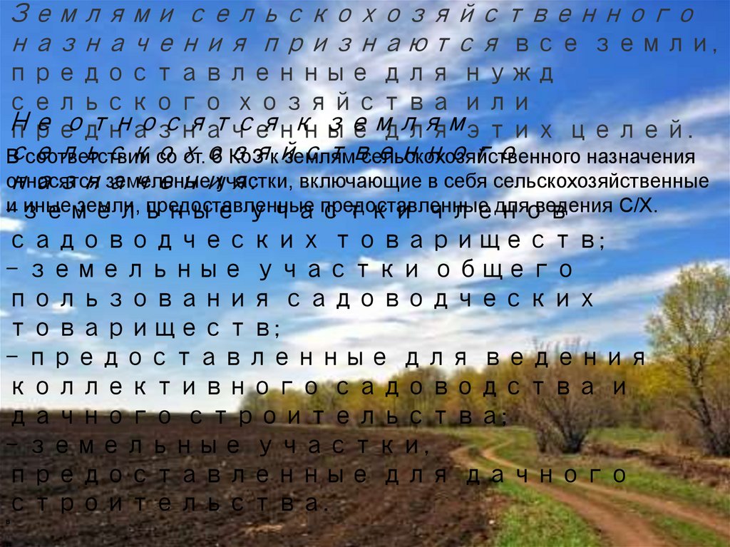 сельскохозяйственного назначения, который означает, что земли, пригодные для