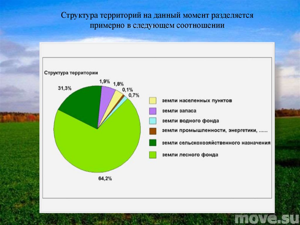 Структура территорий на данный момент разделяетсяпримерно в следующем соотношении