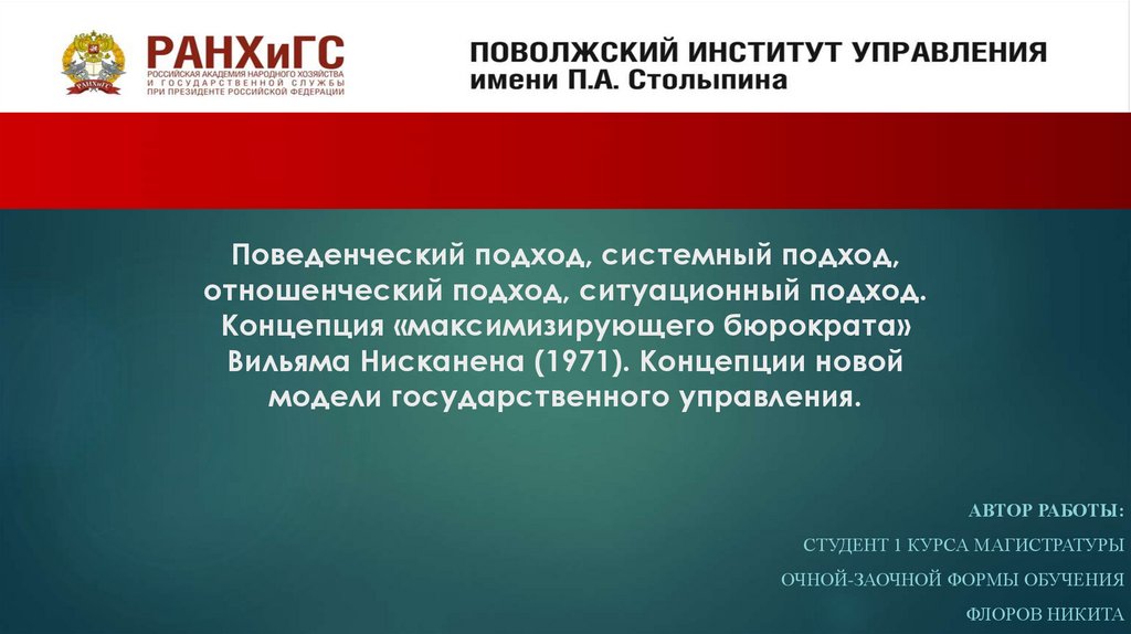 Поведенческий подход, системный подход, отношенческий подход. Концепция «максимизирующего бюрократа» Вильяма Нисканена (1971)