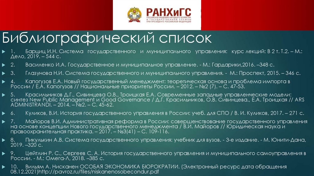 Барциц И.Н. Система государственного и муниципального управления: курс лекций: В 2 т. Т.2. – М.: