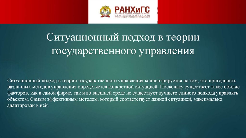 Ситуационный подход в теории государственного управления концентрируется на том, что пригодность