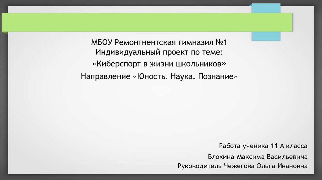 МБОУ Ремонтнентская гимназия №1Индивидуальный проект по теме: