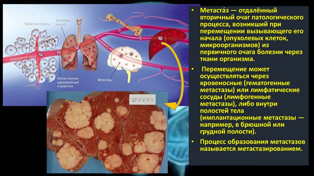 • Метаста́з — отдалённыйвторичный очаг патологического