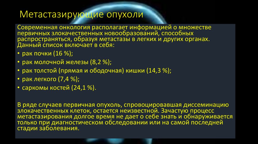 Метастазирующие опухолиСовременная онкология располагает информацией о множестве