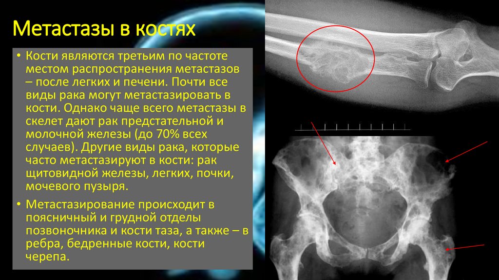 Метастазы в костях• Кости являются третьим по частоте