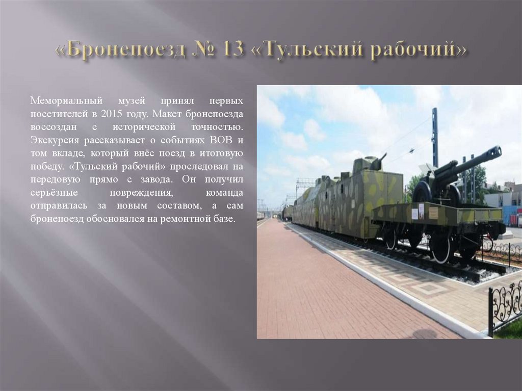 Мемориальный музей принял первыхпосетителей в 2015 году. Макет бронепоезда