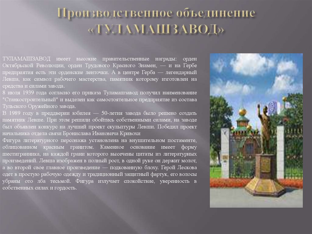 Левша, как символ рабочего мастерства, памятник которому изготовлен на