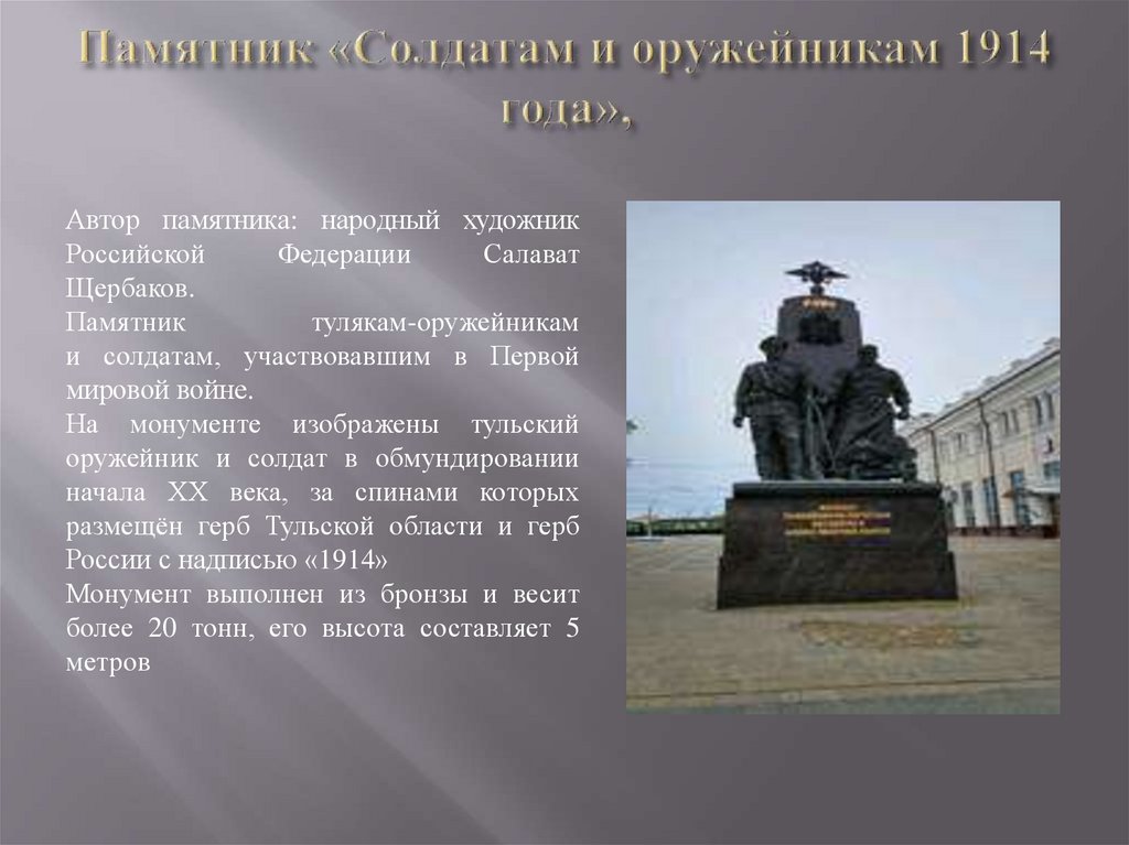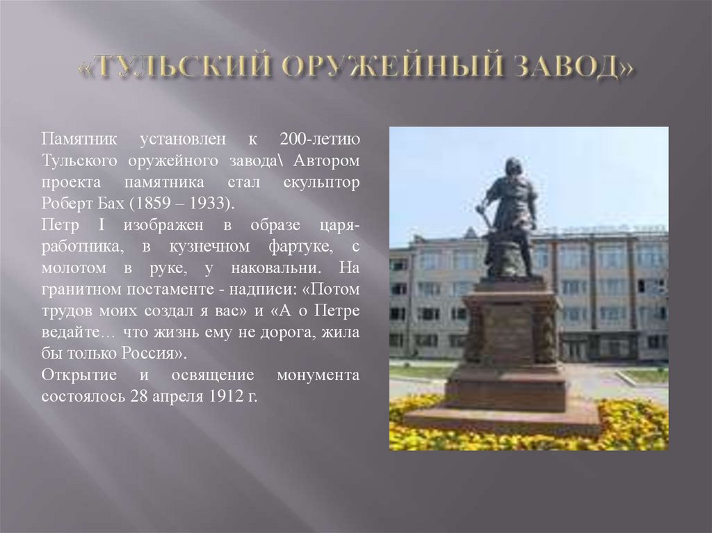 Памятник установлен к 200-летиюТульского оружейного завода\ Автором