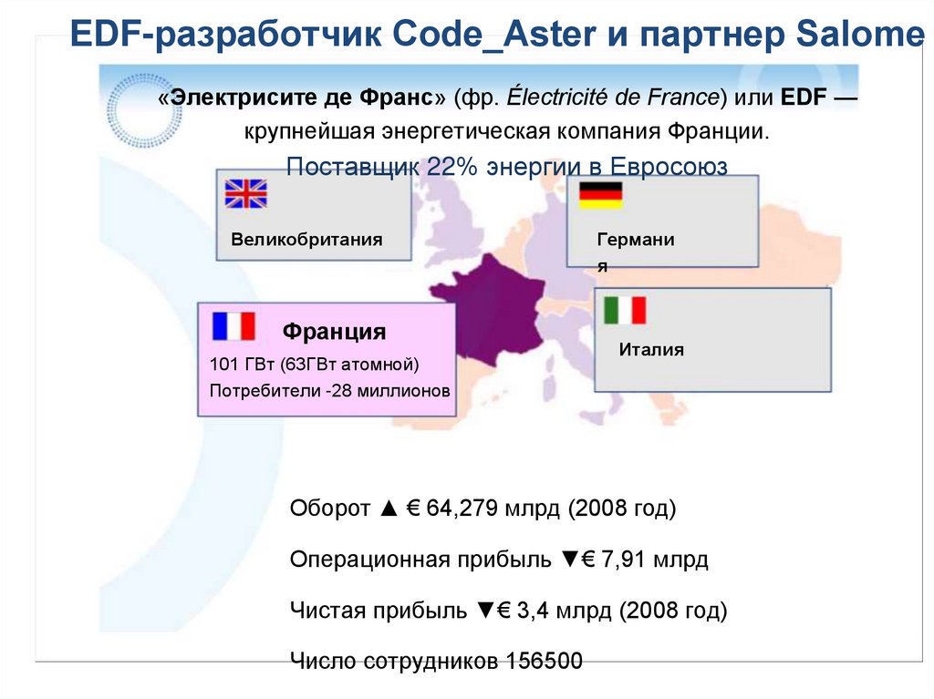 EDF-разработчик Code_Aster и партнер Salome«Электрисите де Франс» (фр. Électricité de France) или EDF —
