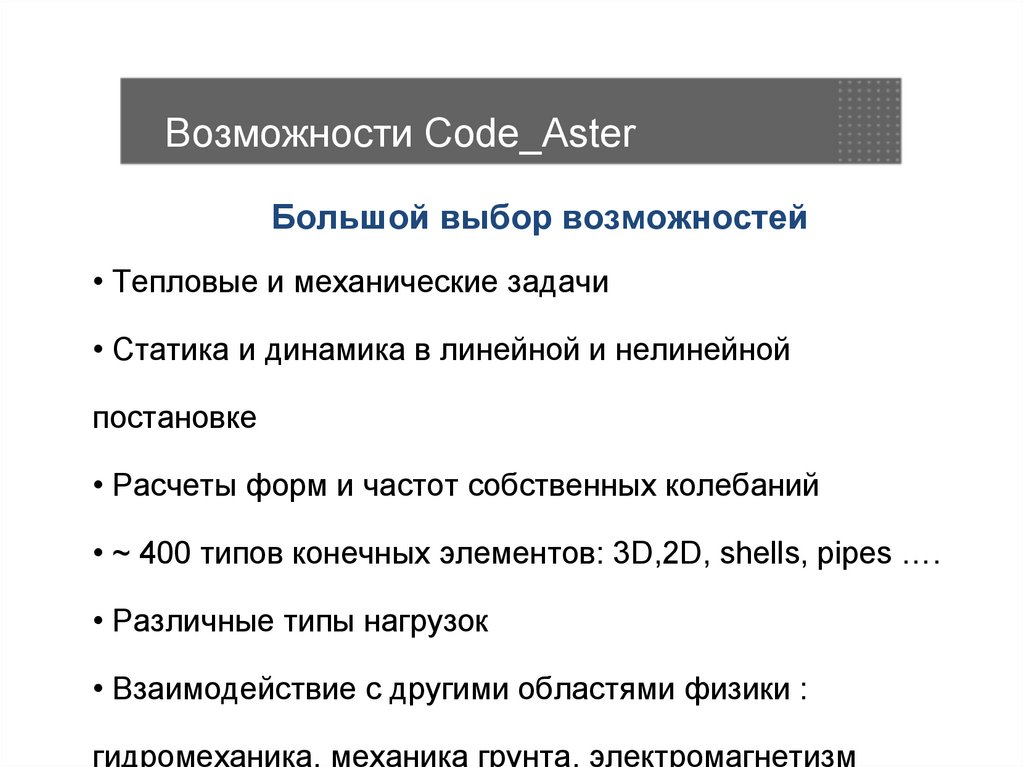 Возможности Code_AsterВысокое быстродействие