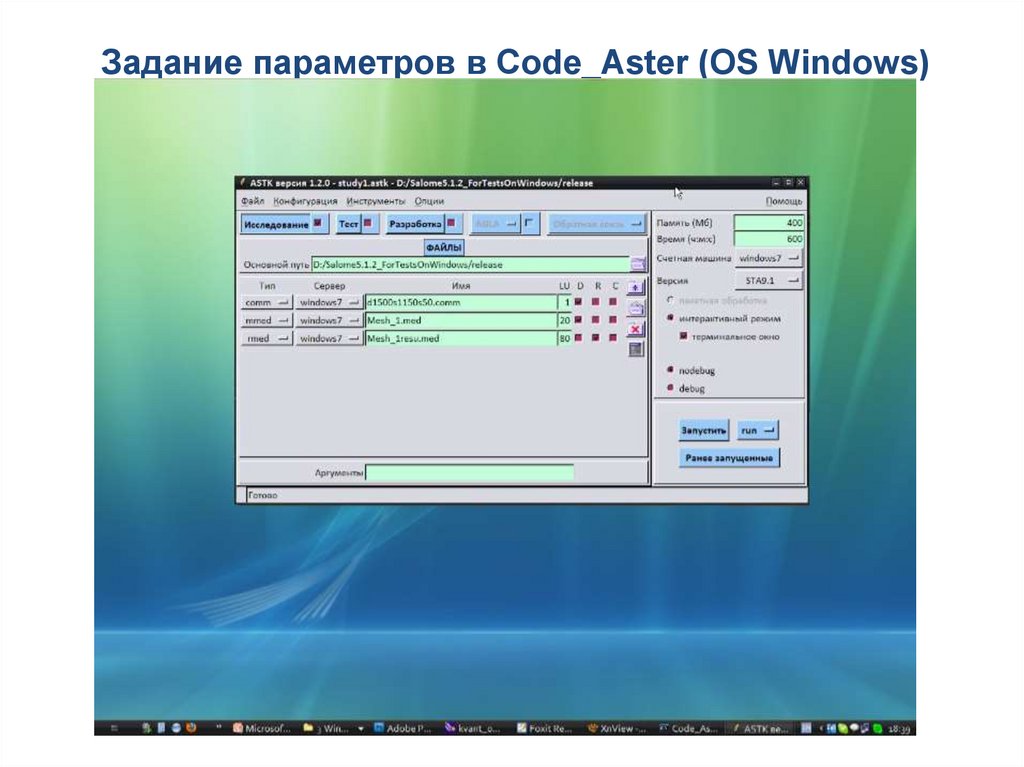 Задание параметров в Code_Aster (OS Windows)23.