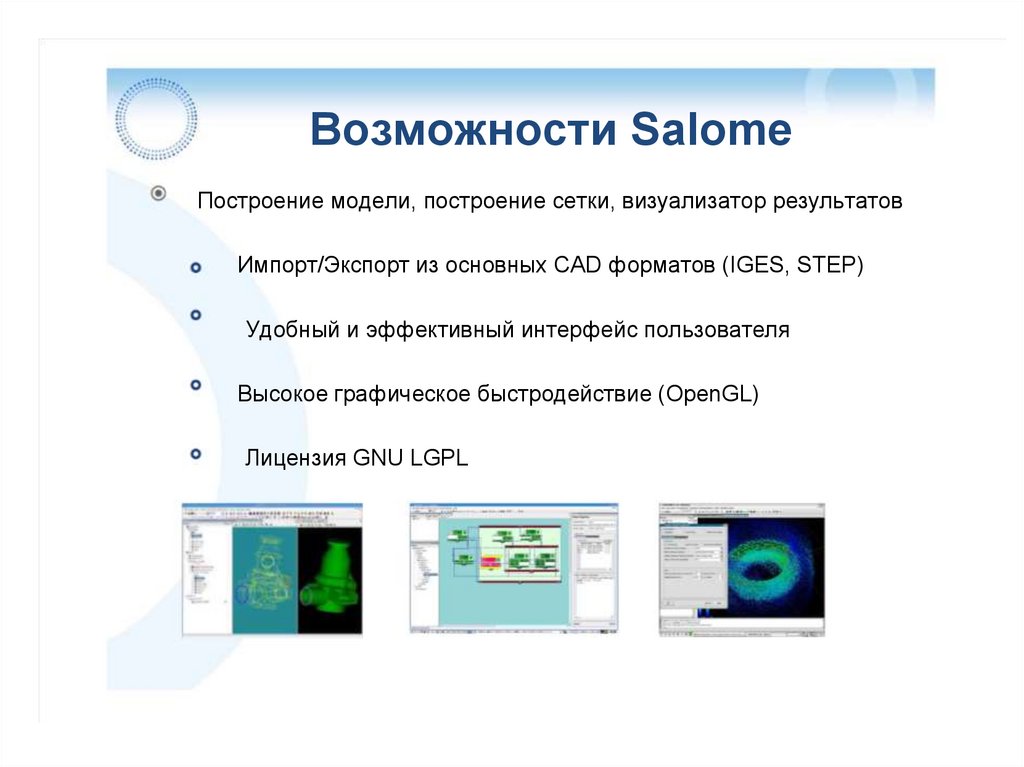 • Совместимость со средой Salome