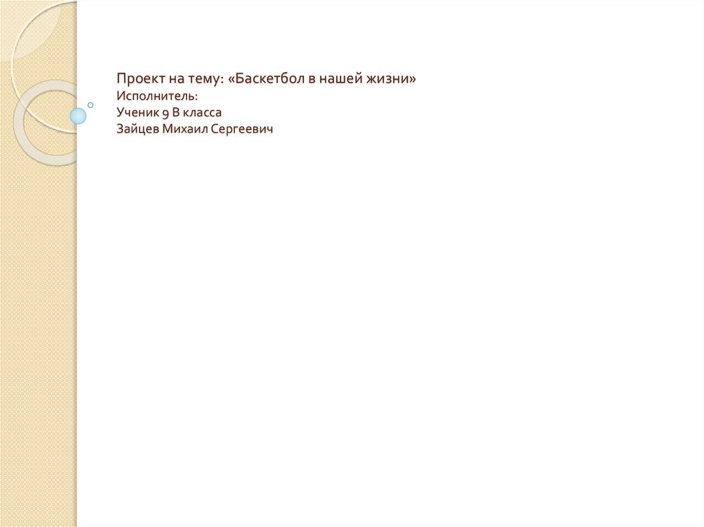 Проект на тему: «Баскетбол в нашей жизни»Исполнитель: