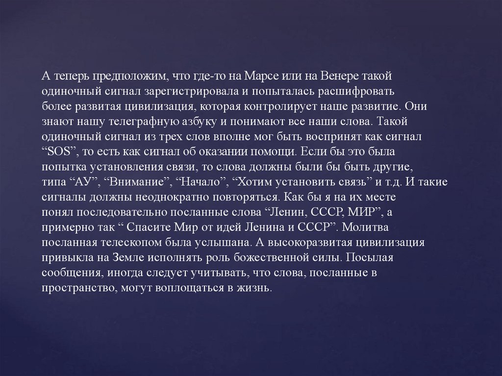 понял последовательно посланные слова “Ленин, СССР, МИР”, а