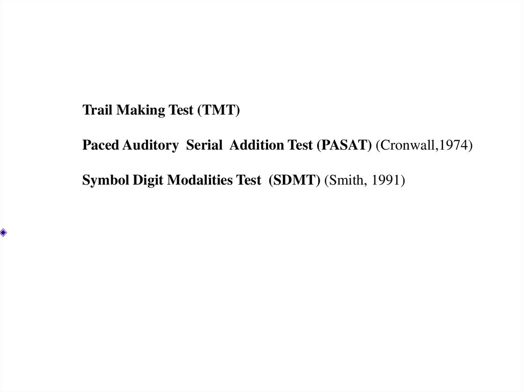 Trail Making Test (TMT)Paced Auditory Serial Addition Test (PASAT) (Cronwall,1974)