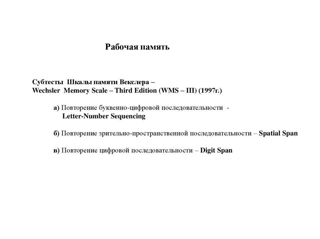 Wechsler Memory Scale – Third Edition (WMS – III) (1997г.)