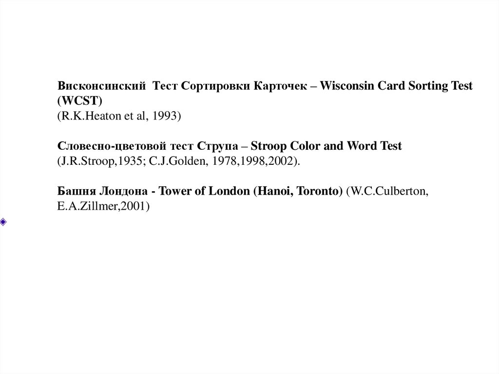 (J.R.Stroop,1935; C.J.Golden, 1978,1998,2002).