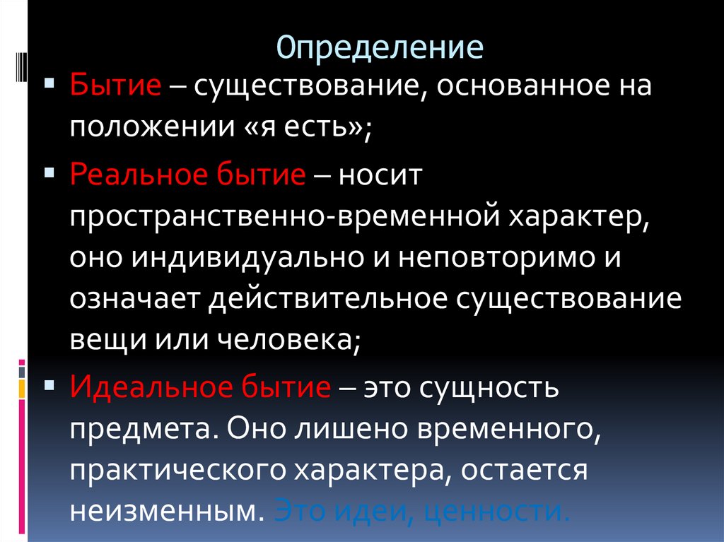 ОпределениеБытие – существование, основанное на