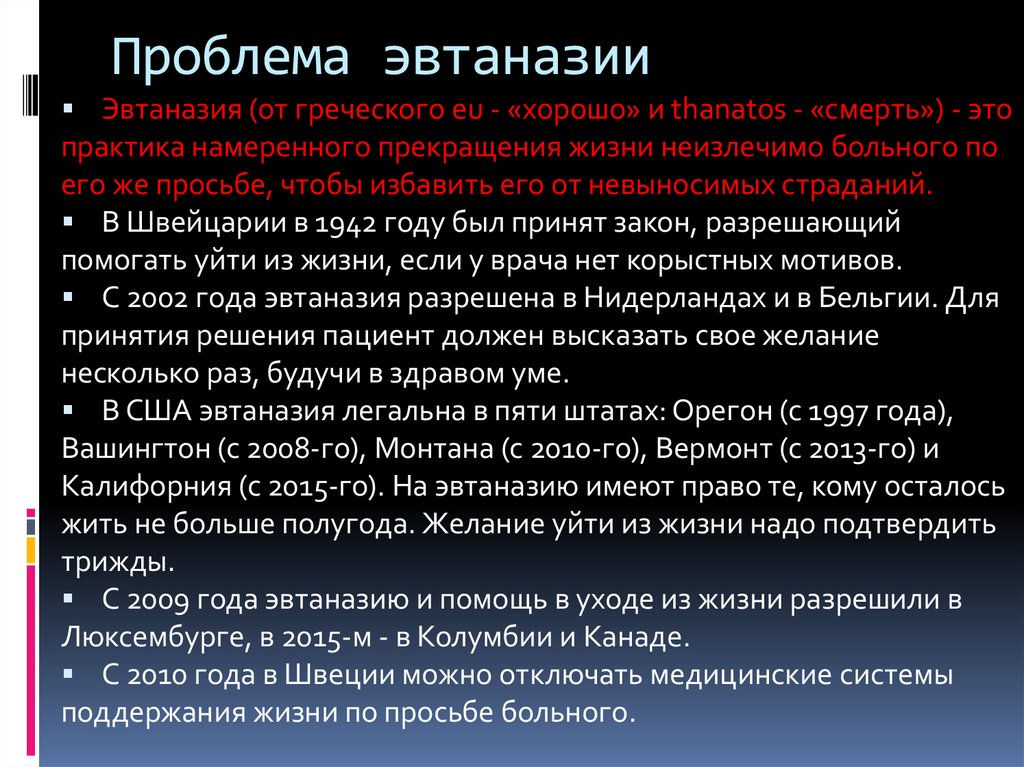 C 2009 года эвтаназию и помощь в уходе из жизни разрешили в