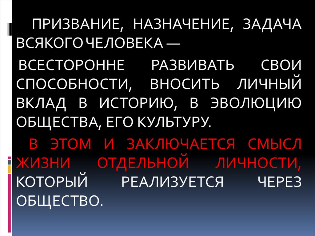 ПРИЗВАНИЕ, НАЗНАЧЕНИЕ, ЗАДАЧАВСЯКОГОЧЕЛОВЕКА —