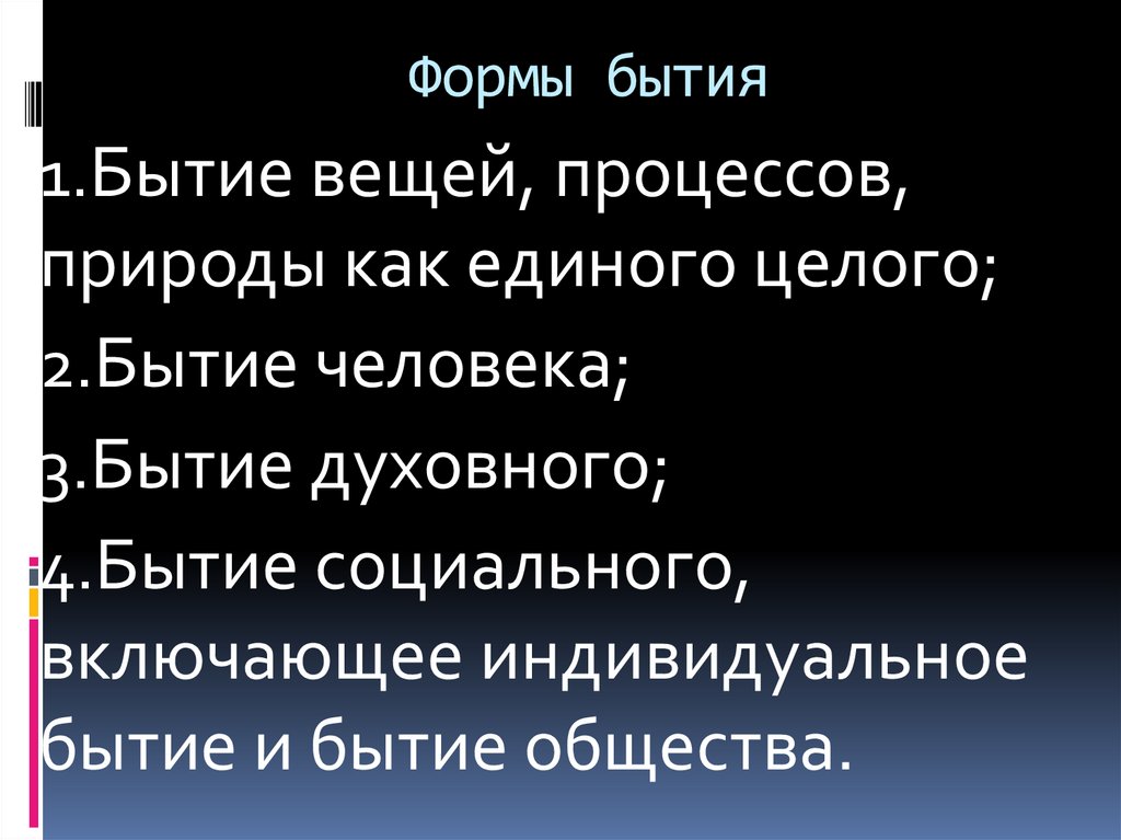 Формы бытия1.Бытие вещей, процессов,