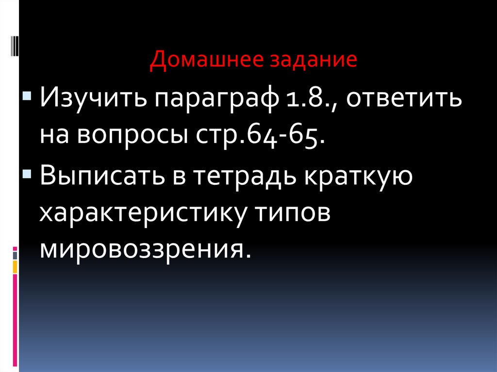 Домашнее заданиеИзучить параграф 1.8., ответить