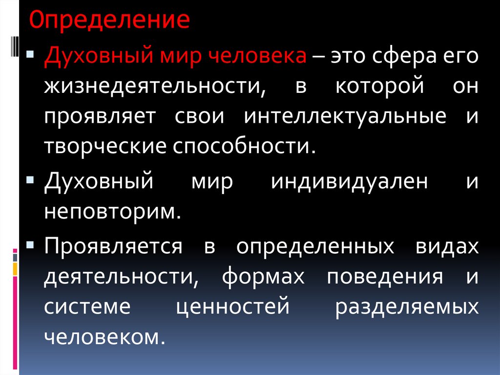 ОпределениеДуховный мир человека – это сфера его