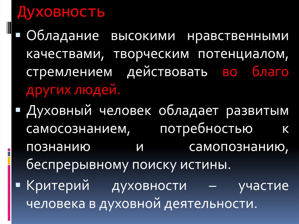 ДуховностьОбладание высокими нравственными