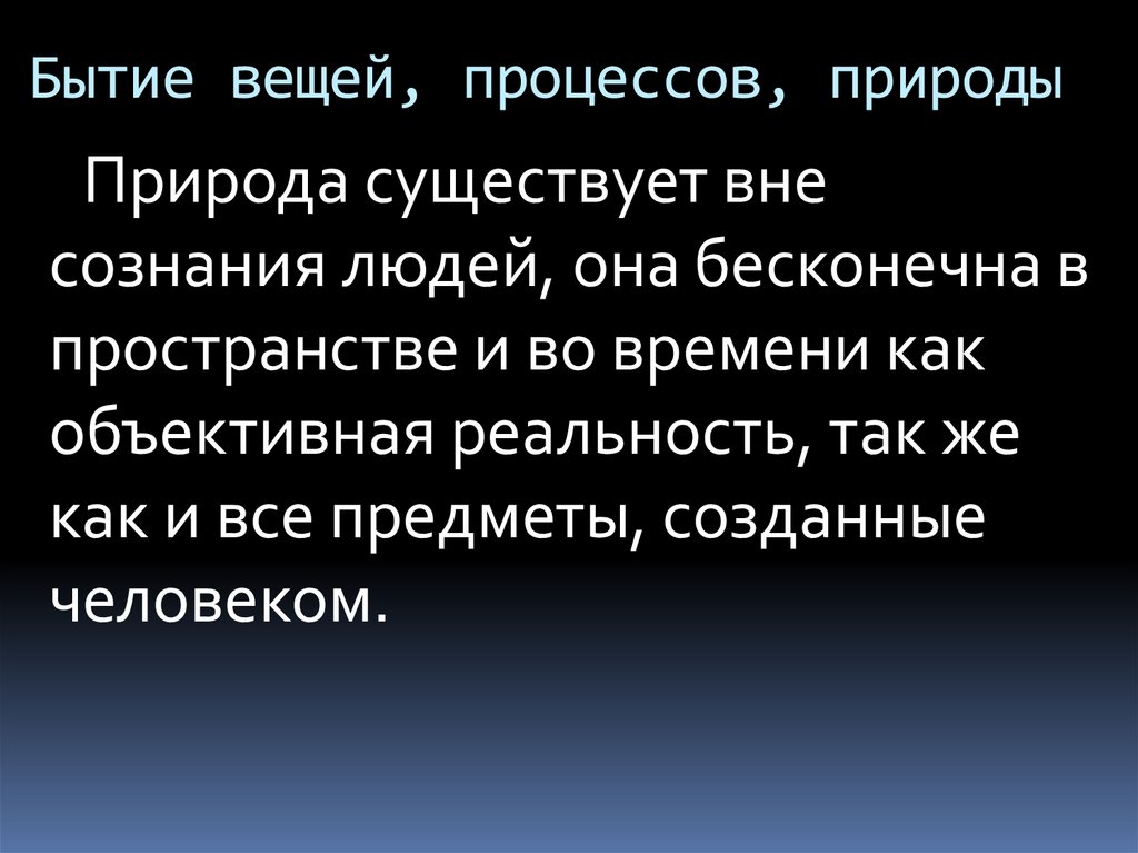 Бытие вещей, процессов, природыПрирода существует вне
