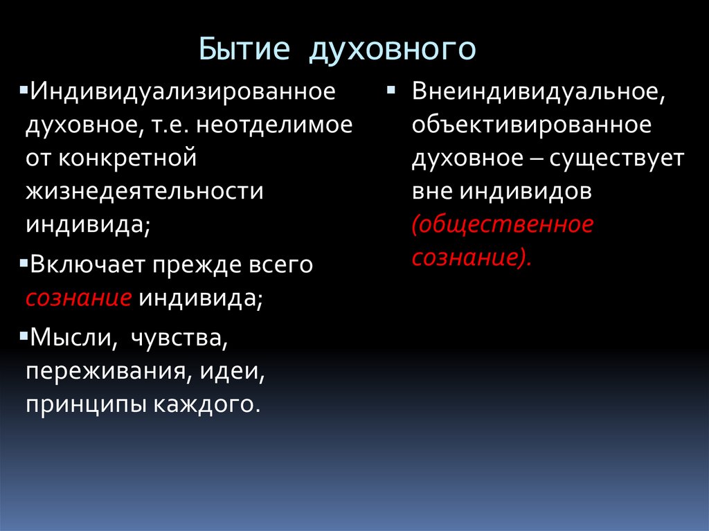 Бытие духовногоИндивидуализированное
